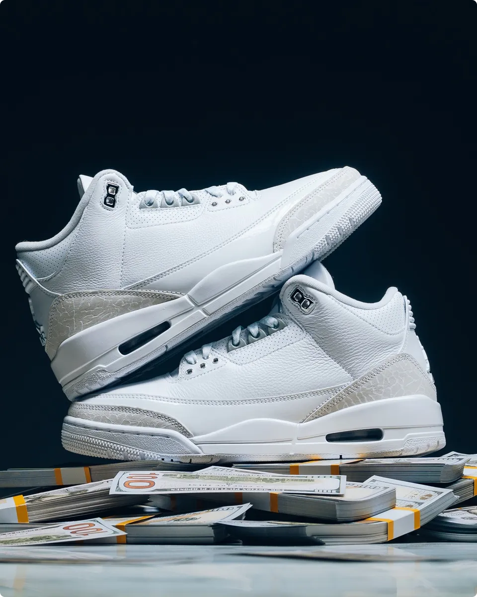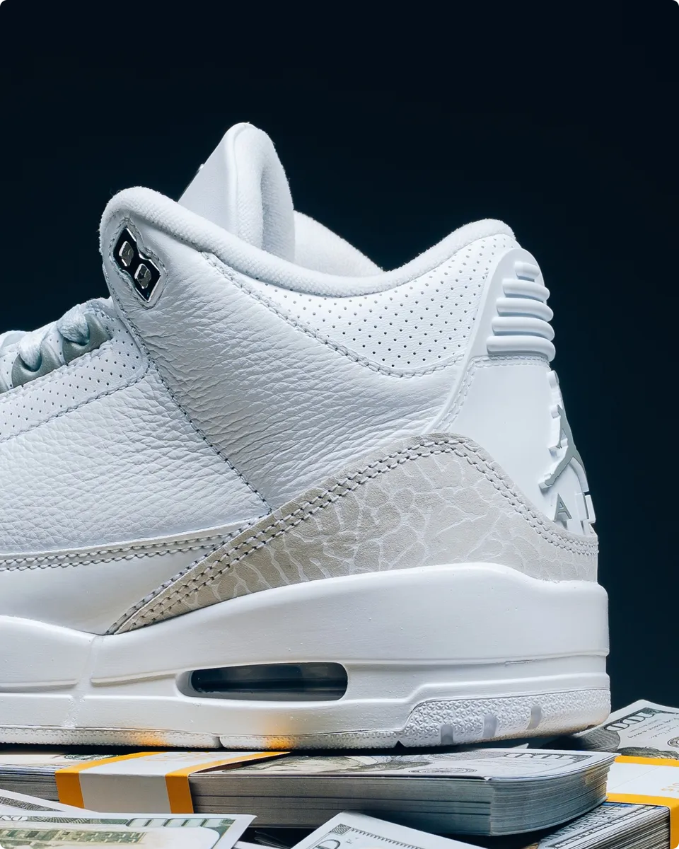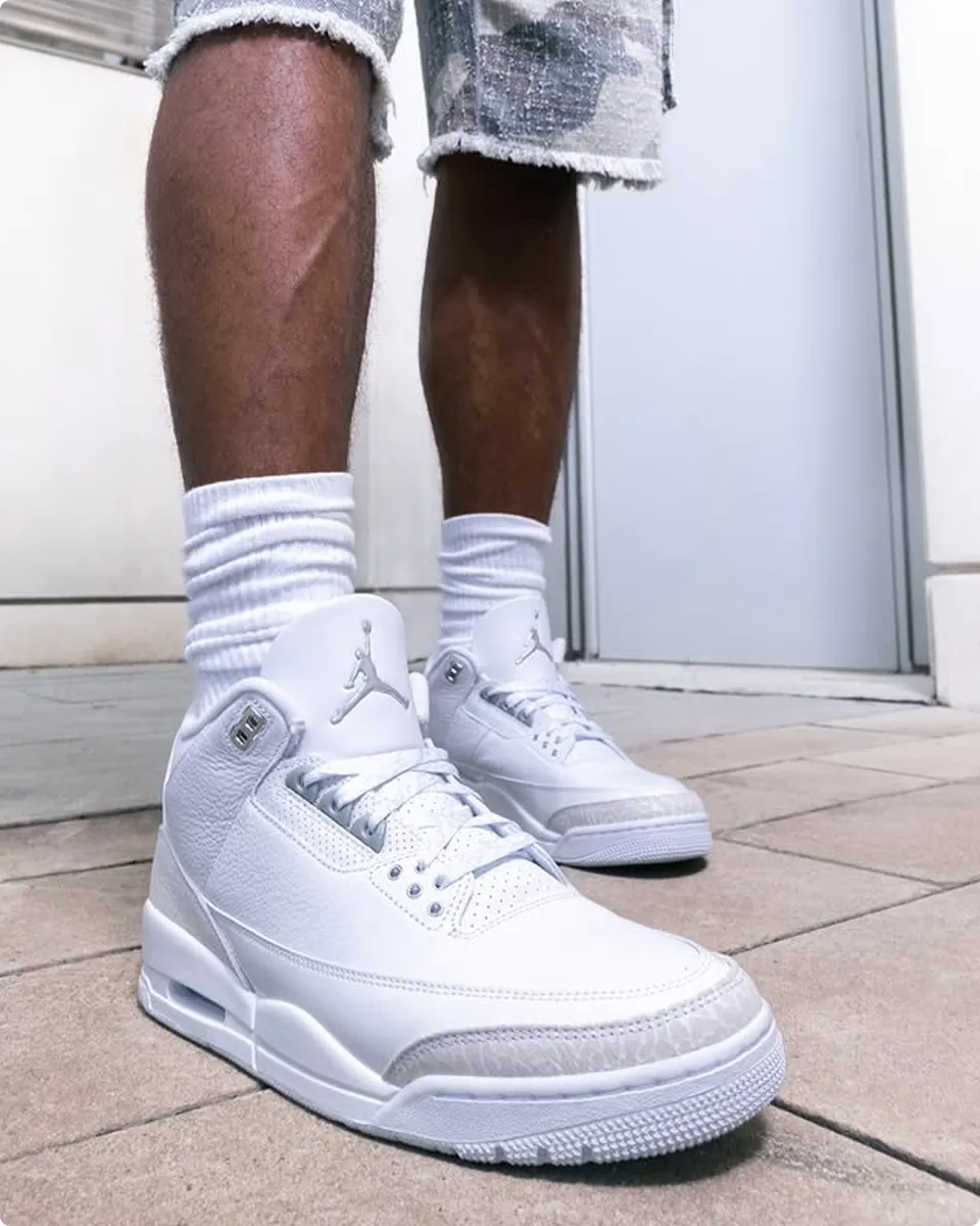 Behold: the “Pure Money” AJ 3, making its glorious return with that pristine white upper and just enough silver sparkle. It’s the ultimate blend of ‘back in my day’ cool and ‘fresh today’ style. Go on, your collection (and maybe your bank account) dares you. Would y’all cop these? These hot shoes won’t last forever!