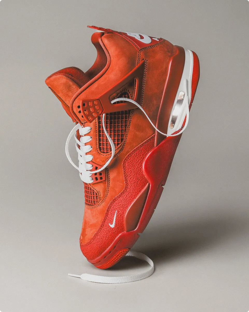 BMX virtuoso Nigel Sylvester and Jordan Brand team up on this charged edition of the AJ4. In the worlds of sport, culture and philanthropy, the ‘Brick by Brick’ colourway is a testament to Nigel’s belief in tenacity and progress. His commitment to push boundaries, make the tricks bigger and the world better inspired the fierce Firewood Orange leather upper. The Cinnabar underlays and accents pulse against the vibrant upper, and a clean Sail midsole brings balance to the bold design.