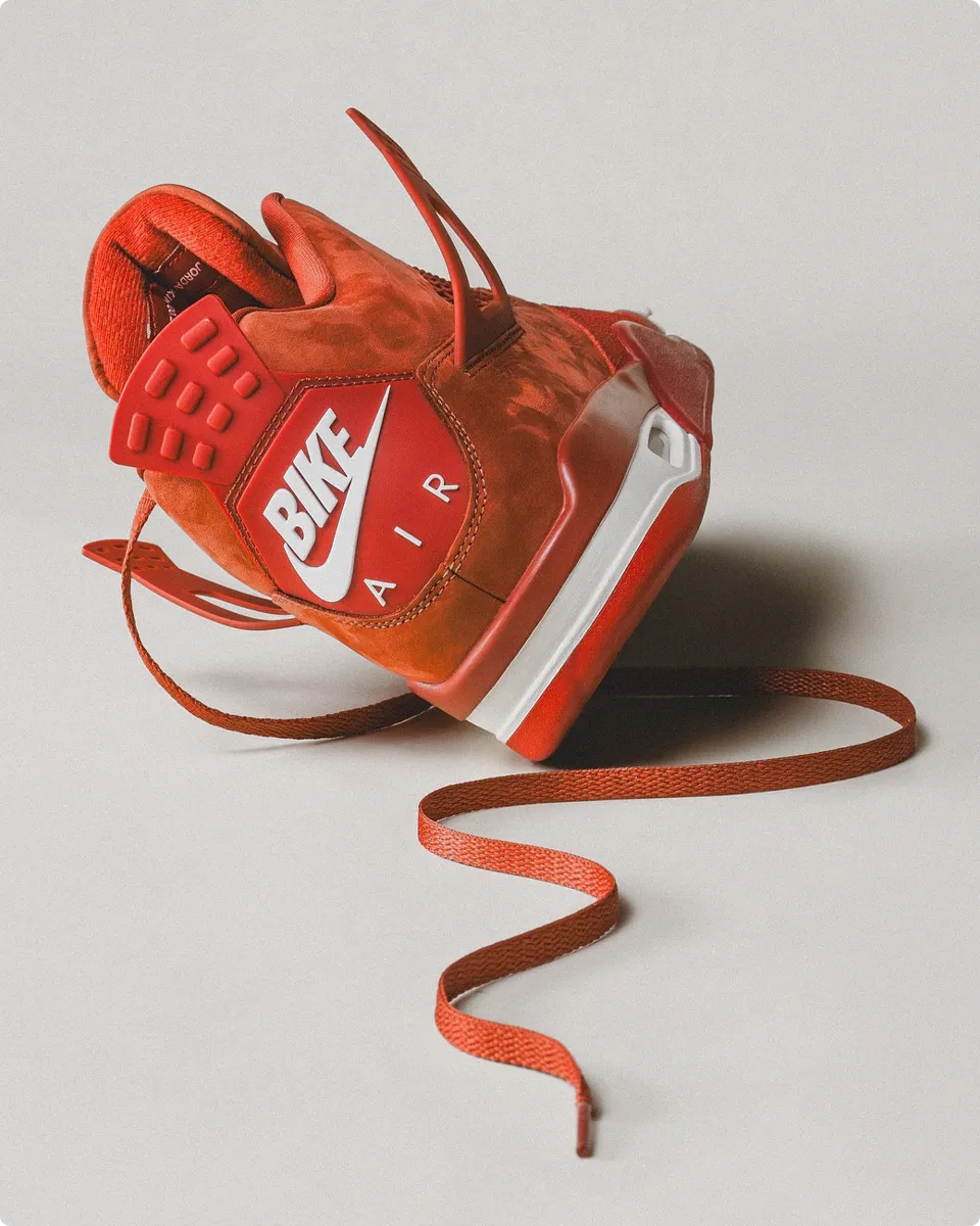 This Nigel Sylvester’s edition showcases a bold all “Firewood Orange” upper, contrasted with crisp “Sail” accents on the midsole and a subtle forefoot mini-Swoosh – a familiar detail from his previous takes on the AJ 1 and AJ 4 RM. With this launch, the “Bike Air” has evolved from its prominent and signature design rather than the traditional heel tabs of the past.