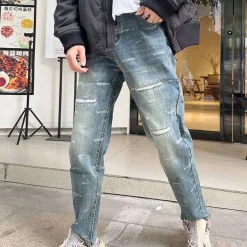 BLCG elevates classic denim with this standout pair featuring an all-over monogram print. Crafted from faded blue cotton denim, the jeans showcase intentional distressing and subtle abrasions on the front for a rugged, worn-in effect. The tapered silhouette keeps the fit modern, while the leather logo patch and embroidered branding reinforce its designer edge. Perfect for those who want their denim to speak street-luxury fluently.