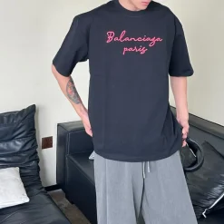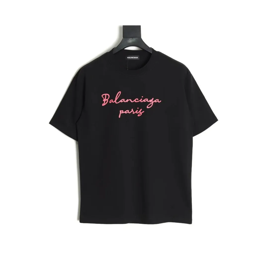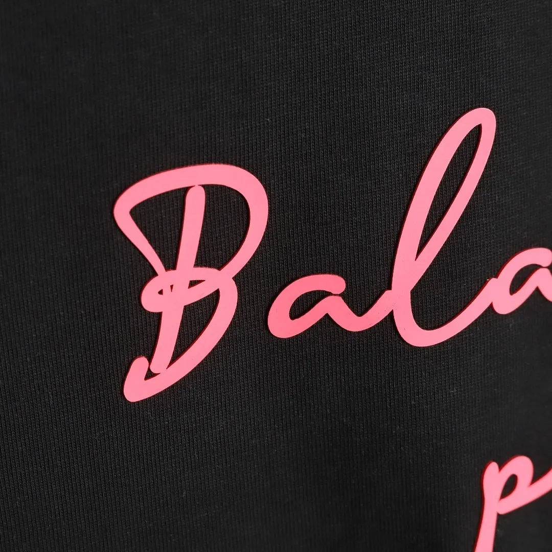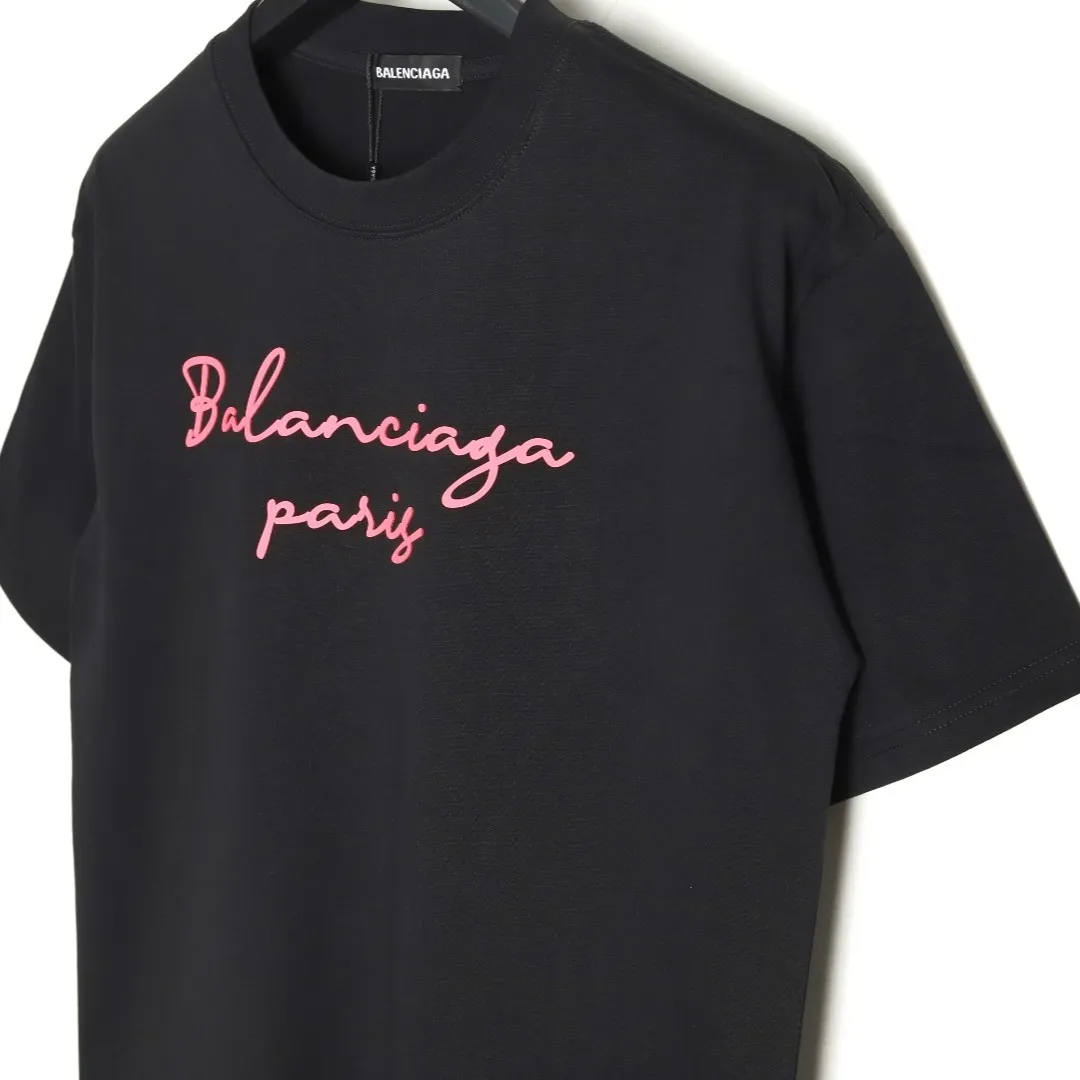 A minimalist black base meets bold pink handwriting-style lettering with “BLCG Paris” elegantly printed across the chest. The graphic adds a playful yet refined twist, making the piece perfect for styling with anything from jeans to tailored pants. Featuring a comfortable medium fit, soft cotton fabric, and classic crewneck cut ideal for elevated everyday wear with a Parisian touch.