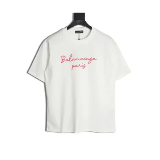 A minimalist white base meets bold pink handwriting-style lettering with “BLCG Paris” elegantly printed across the chest. The graphic adds a playful yet refined twist, making the piece perfect for styling with anything from jeans to tailored pants. Featuring a comfortable medium fit, soft cotton fabric, and classic crewneck cut ideal for elevated everyday wear with a Parisian touch.
