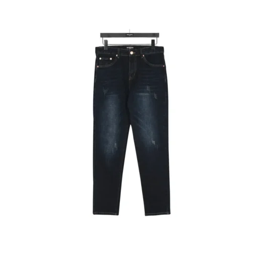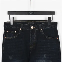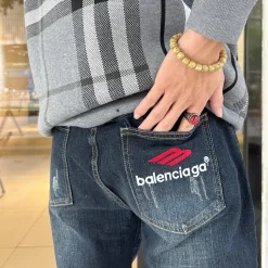 A bold spin on timeless denim, this pair from BLCG features a washed indigo tone with subtle distressing for an effortlessly worn-in vibe. The standout detail is the vibrant red emblem and lowercase “balenciaga®” branding on the back pocket bringing unexpected contrast and a streetwear edge. Crafted in sturdy cotton with a tapered fit, these jeans balance heritage workwear roots with contemporary luxury.