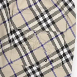 Channeling classic heritage with a modern edge, these Burberry shorts feature the iconic archive check pattern reimagined in a diagonal layout. The design includes a knight motif embroidered subtly over the back pocket for a distinctive brand touch. Lightweight and fast-drying, they’re finished with an elastic waistband and side adjusters, ideal for both city strolls and coastal escapes.