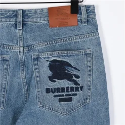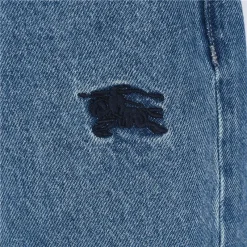 Crafted from classic blue denim, these Burberry jeans feature a relaxed fit and a timeless stonewashed finish. A bold embroidered equestrian knight logo on the back pocket sets this pair apart, adding signature flair to an everyday staple. Minimal distressing on the front complements the clean lines, making these jeans a versatile option for elevated casualwear.