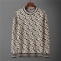 Description: The Burberry Sweater is the embodiment of British heritage and timeless luxury. Crafted from premium knit fibers, it features a refined and sophisticated fit, signaling distinct class. The Burberry Sweater blends classic and modern elements, consistently recognizable by exclusive brand motifs, asserting an elegant aesthetic and a connection to British fashion history.