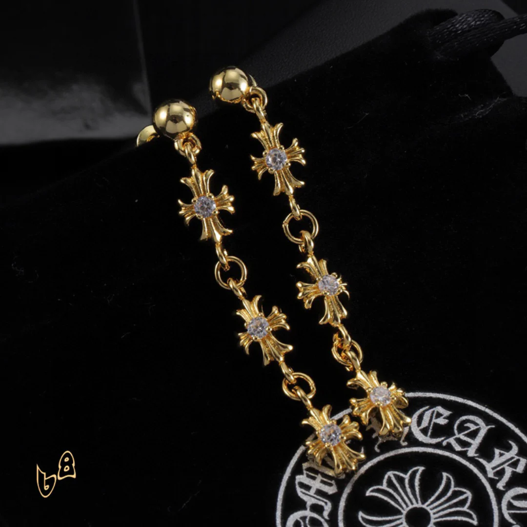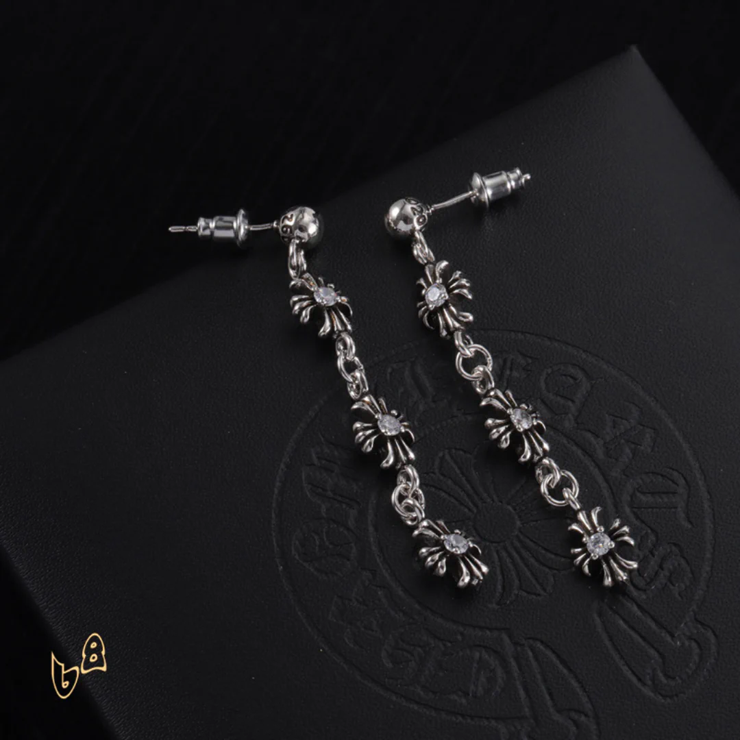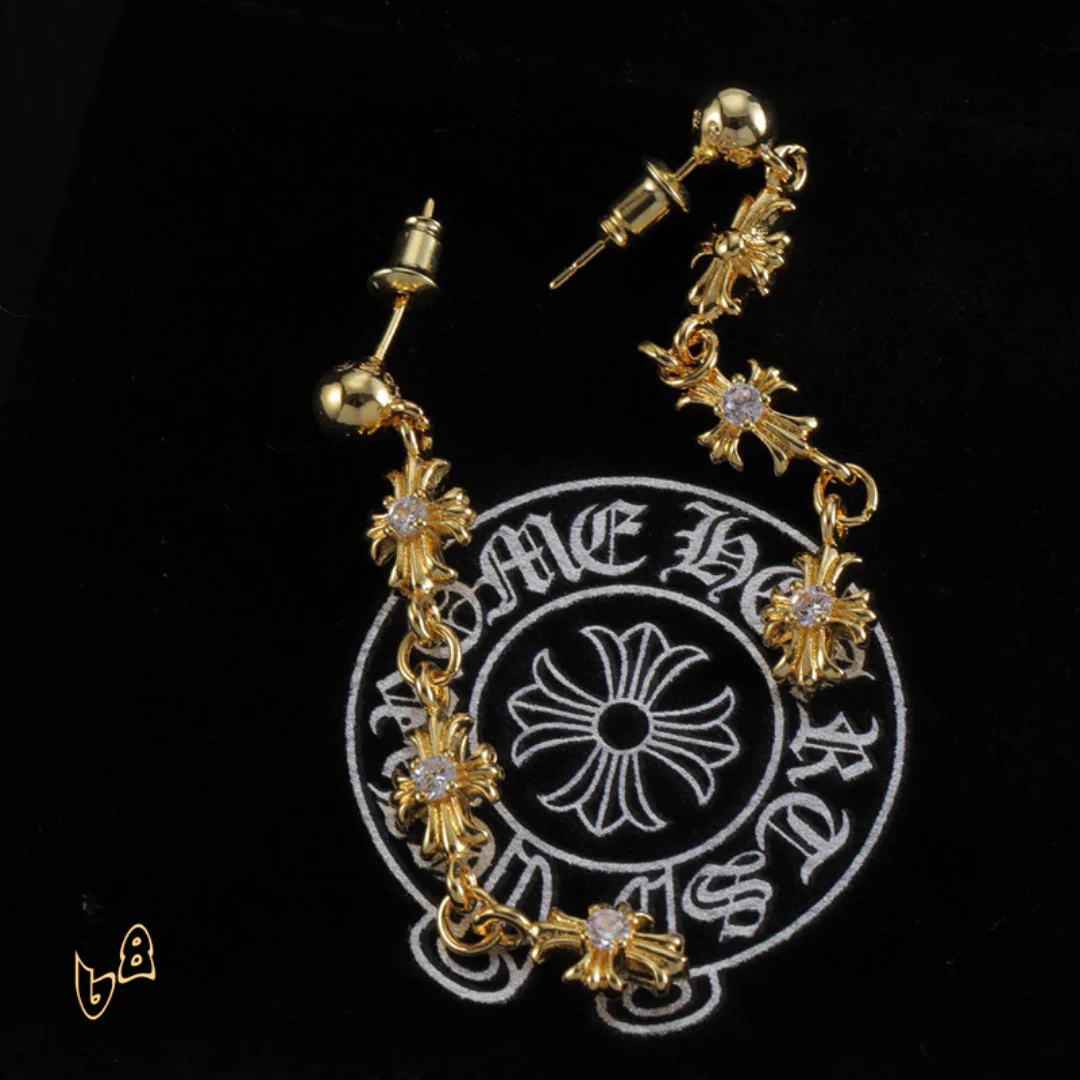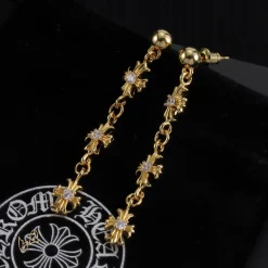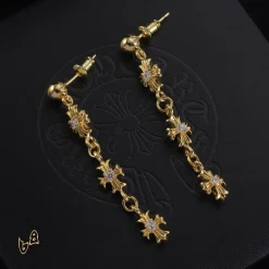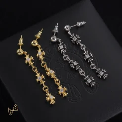 Each pair of Chrome Hearts earrings is a work of art steeped in a gritty, high-fashion aesthetic. With signature details like crosses and unique motifs, these earrings are a statement of fearless individuality and raw attitude. Whether you choose a subtle design or a bold, dramatic piece, these earrings will frame your face and command attention, adding an air of mystery and confidence to your style.
