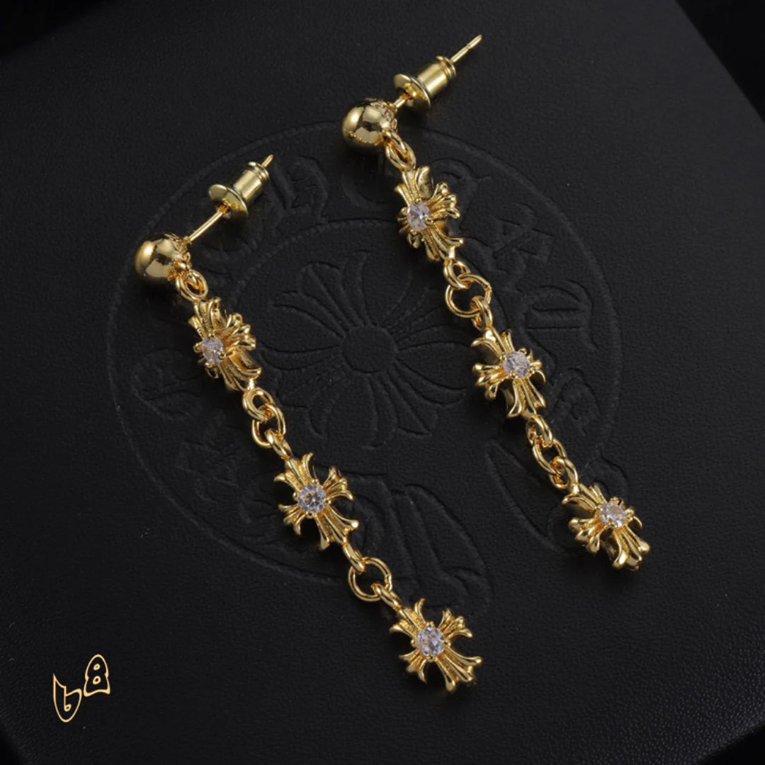CH Cross Flower Charm Earrings - CH0159 - gold
