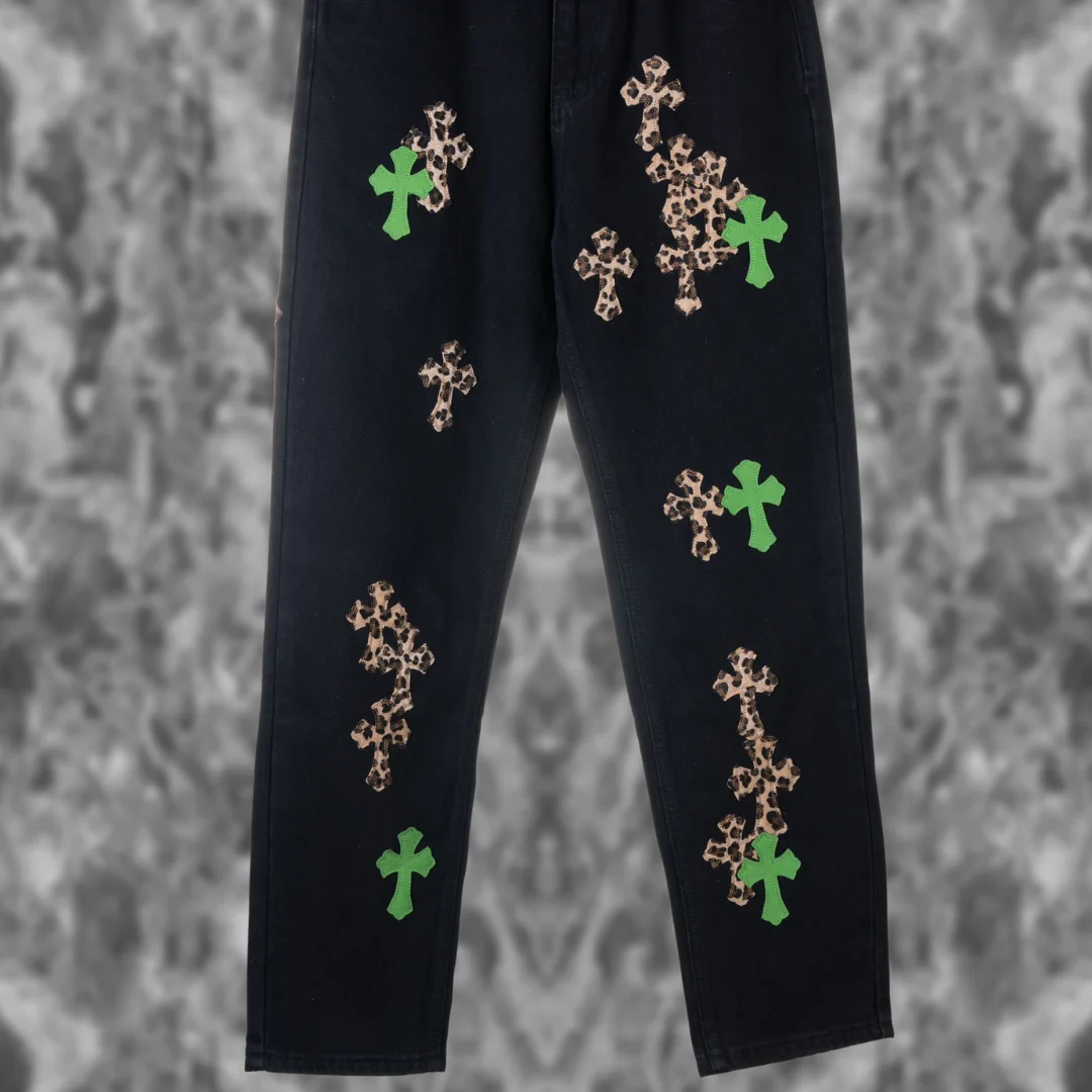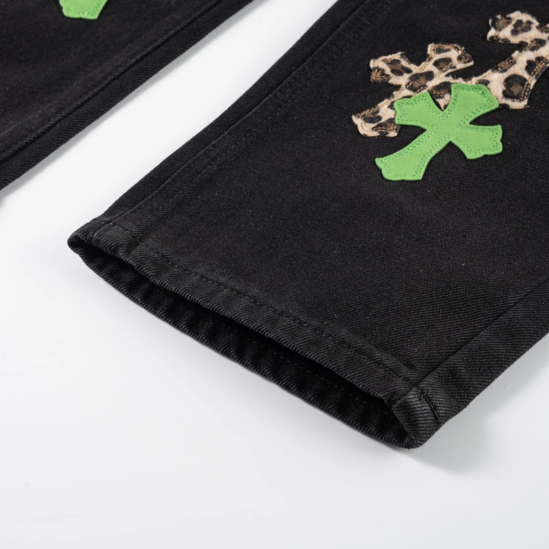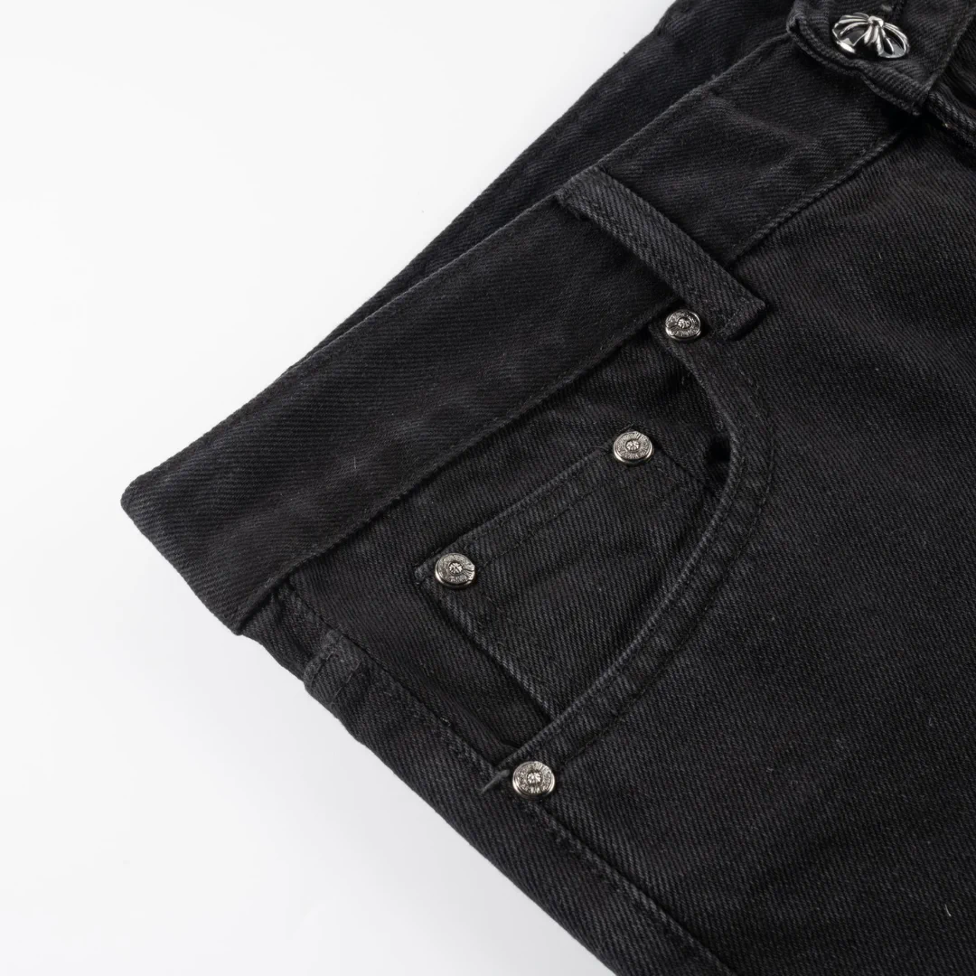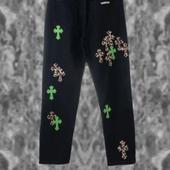 Description: Each pair of Chrome Hearts jeans is a work of art steeped in a gritty, high-fashion aesthetic. With iconic details like custom crosses and unique leather patches, these jeans are a statement of fearless individuality and raw attitude. Whether you pair them with a simple tee or a bold jacket, these jeans will be the perfect finishing touch, helping you dominate the street style scene and capture every eye.
