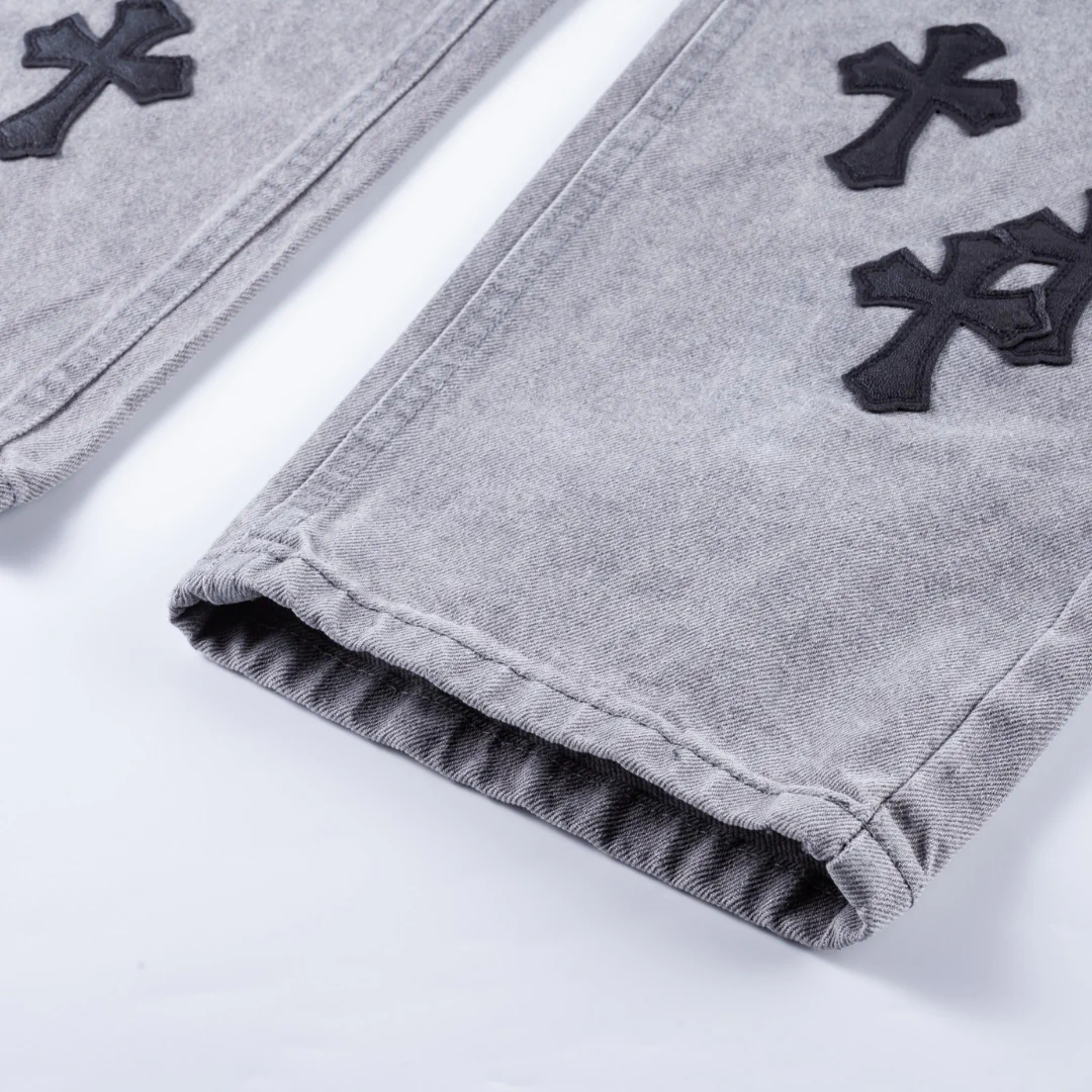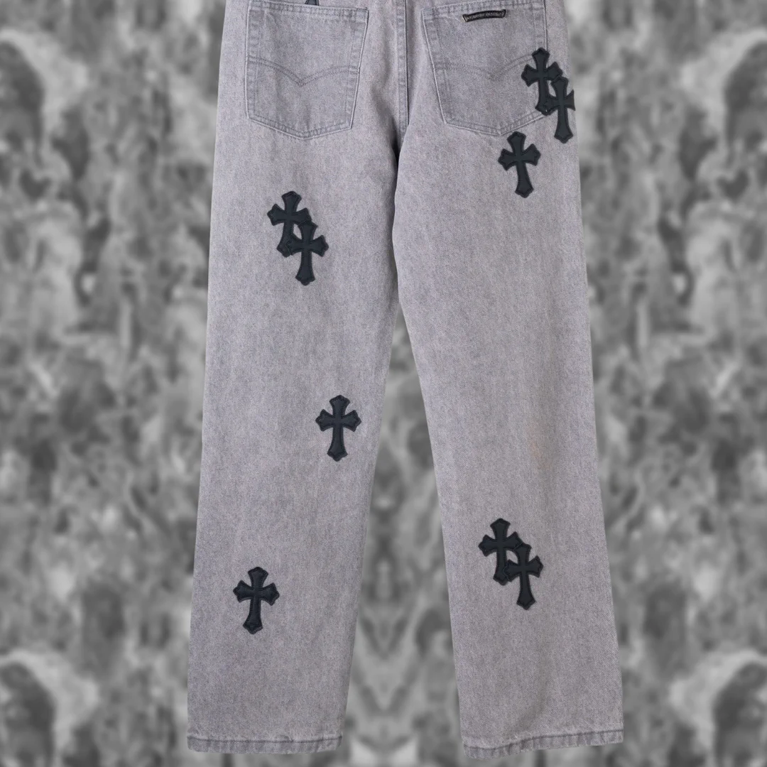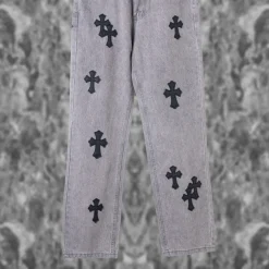 Description: Each pair of Chrome Hearts jeans is a work of art steeped in a gritty, high-fashion aesthetic. With iconic details like custom crosses and unique leather patches, these jeans are a statement of fearless individuality and raw attitude. Whether you pair them with a simple tee or a bold jacket, these jeans will be the perfect finishing touch, helping you dominate the street style scene and capture every eye.