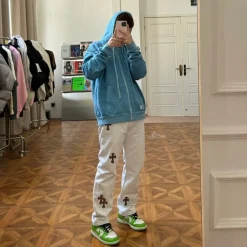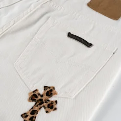 Description: Each pair of Chrome Hearts jeans is a work of art steeped in a gritty, high-fashion aesthetic. With iconic details like custom crosses and unique leather patches, these jeans are a statement of fearless individuality and raw attitude. Whether you pair them with a simple tee or a bold jacket, these jeans will be the perfect finishing touch, helping you dominate the street style scene and capture every eye.