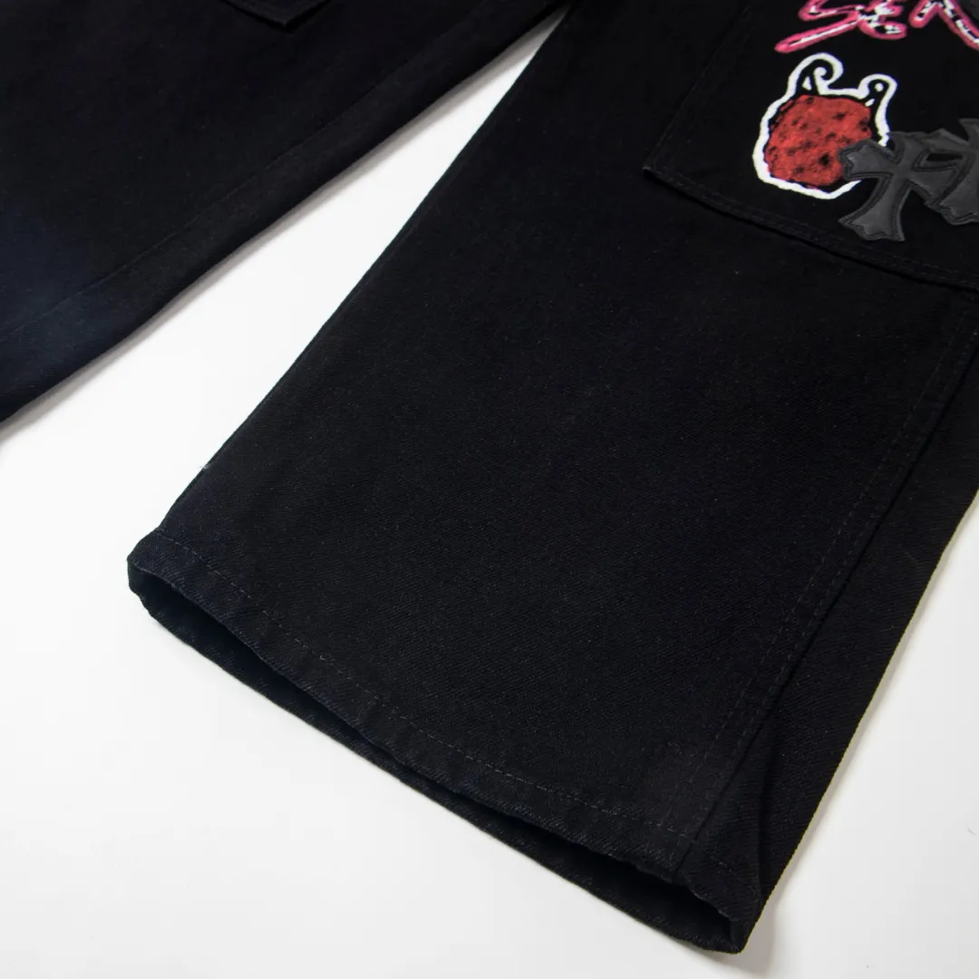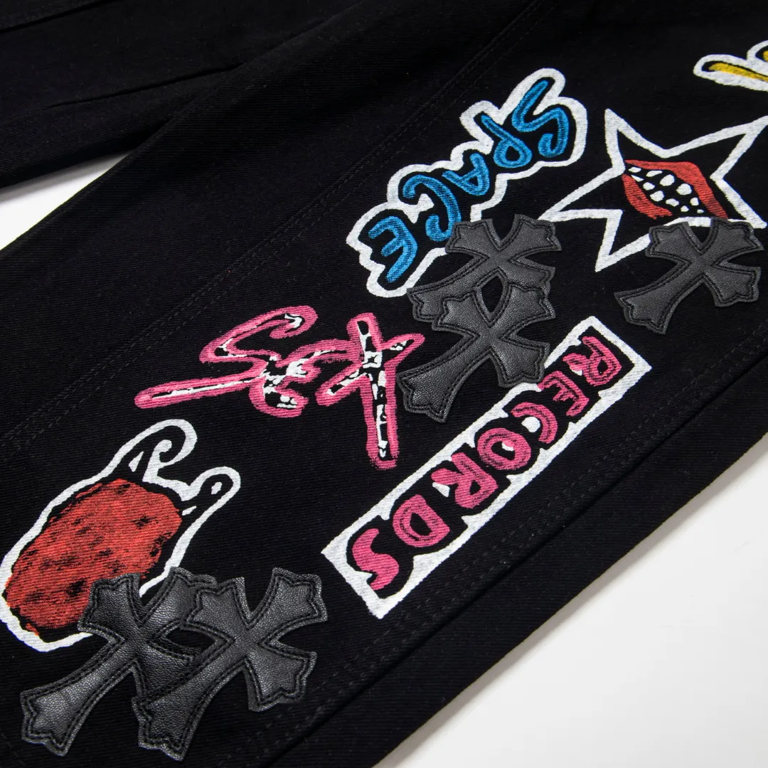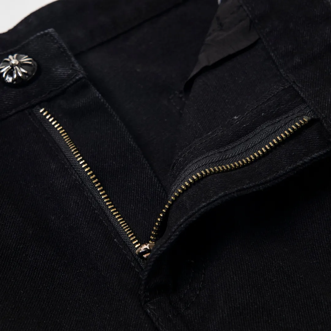 Description: Each pair of Chrome Hearts jeans is a work of art steeped in a gritty, high-fashion aesthetic. With iconic details like custom crosses and unique leather patches, these jeans are a statement of fearless individuality and raw attitude. Whether you pair them with a simple tee or a bold jacket, these jeans will be the perfect finishing touch, helping you dominate the street style scene and capture every eye.