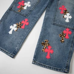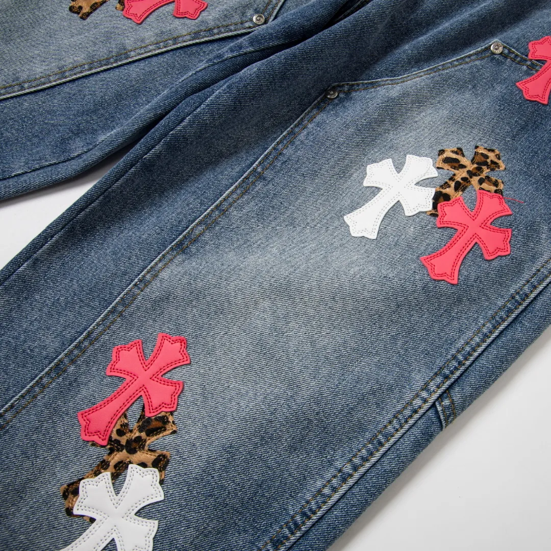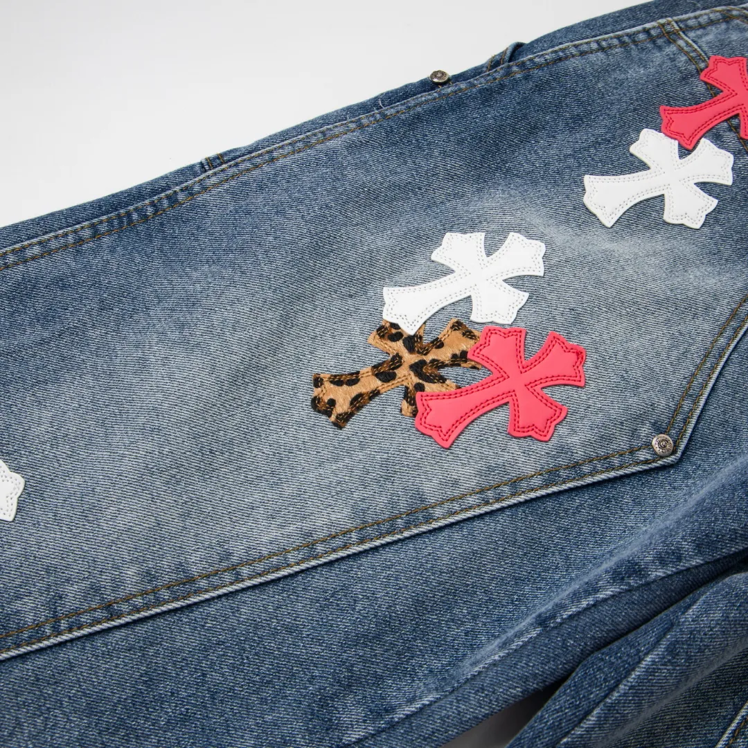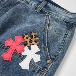 Description: Each pair of Chrome Hearts jeans is a work of art steeped in a gritty, high-fashion aesthetic. With iconic details like custom crosses and unique leather patches, these jeans are a statement of fearless individuality and raw attitude. Whether you pair them with a simple tee or a bold jacket, these jeans will be the perfect finishing touch, helping you dominate the street style scene and capture every eye.