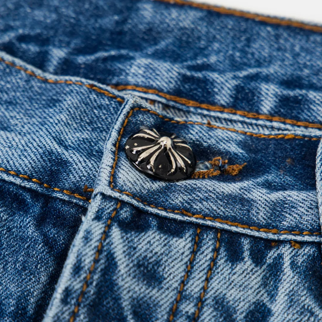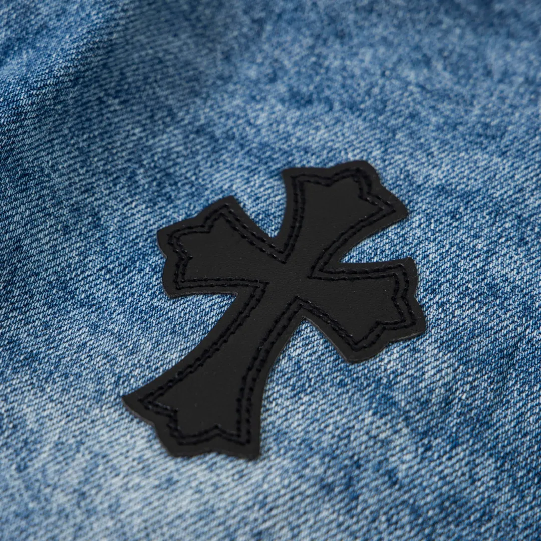Description: Each pair of Chrome Hearts jeans is a work of art steeped in a gritty, high-fashion aesthetic. With iconic details like custom crosses and unique leather patches, these jeans are a statement of fearless individuality and raw attitude. Whether you pair them with a simple tee or a bold jacket, these jeans will be the perfect finishing touch, helping you dominate the street style scene and capture every eye.