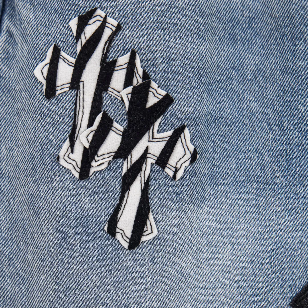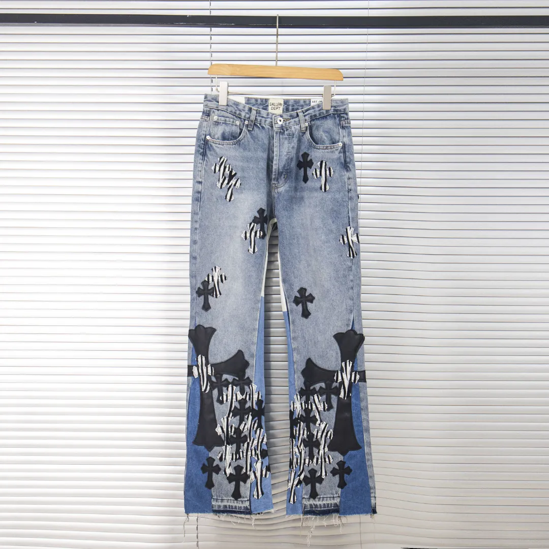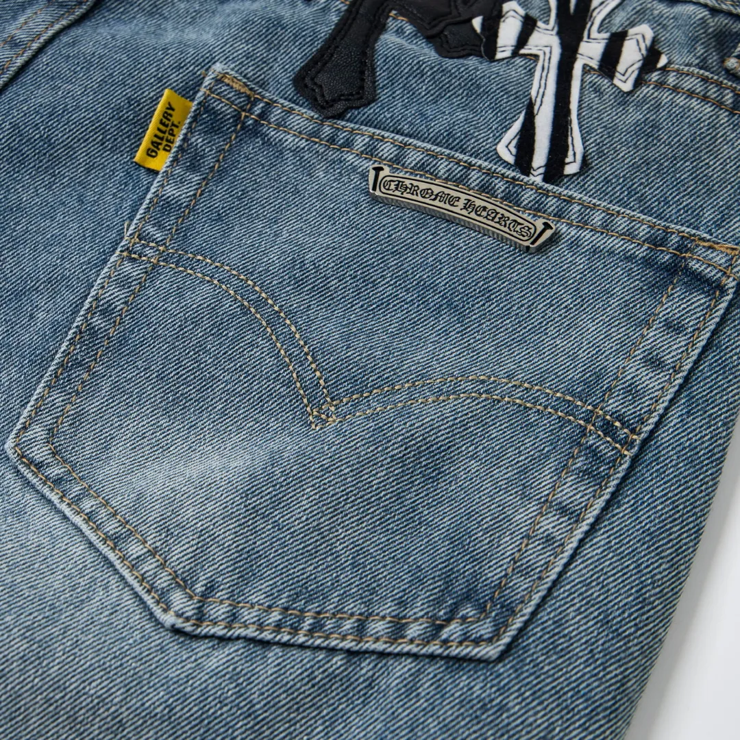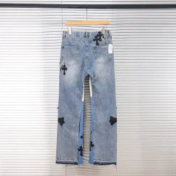 Description: Each pair of Chrome Hearts jeans is a work of art steeped in a gritty, high-fashion aesthetic. With iconic details like custom crosses and unique leather patches, these jeans are a statement of fearless individuality and raw attitude. Whether you pair them with a simple tee or a bold jacket, these jeans will be the perfect finishing touch, helping you dominate the street style scene and capture every eye.