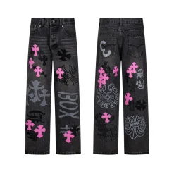 Description: Each pair of Chrome Hearts jeans is a work of art steeped in a gritty, high-fashion aesthetic. With iconic details like custom crosses and unique leather patches, these jeans are a statement of fearless individuality and raw attitude. Whether you pair them with a simple tee or a bold jacket, these jeans will be the perfect finishing touch, helping you dominate the street style scene and capture every eye.
