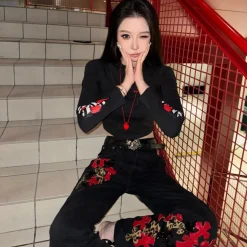 Description: Each pair of Chrome Hearts jeans is a work of art steeped in a gritty, high-fashion aesthetic. With iconic details like custom crosses and unique leather patches, these jeans are a statement of fearless individuality and raw attitude. Whether you pair them with a simple tee or a bold jacket, these jeans will be the perfect finishing touch, helping you dominate the street style scene and capture every eye.