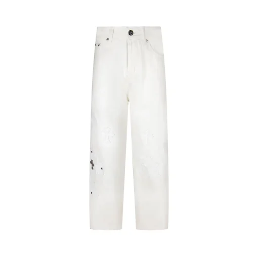 Description: Each pair of Chrome Hearts jeans is a work of art steeped in a gritty, high-fashion aesthetic. With iconic details like custom crosses and unique leather patches, these jeans are a statement of fearless individuality and raw attitude. Whether you pair them with a simple tee or a bold jacket, these jeans will be the perfect finishing touch, helping you dominate the street style scene and capture every eye.