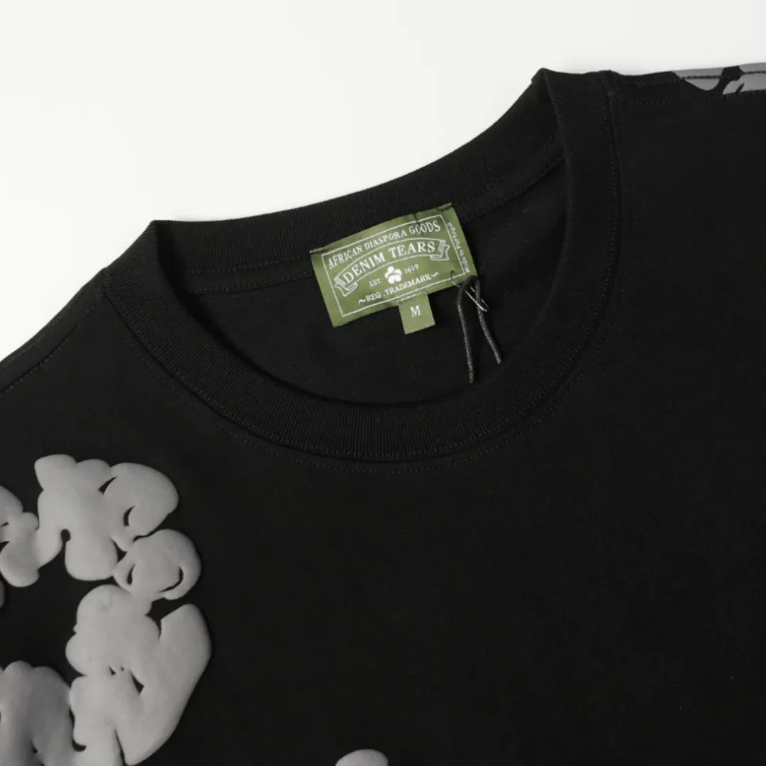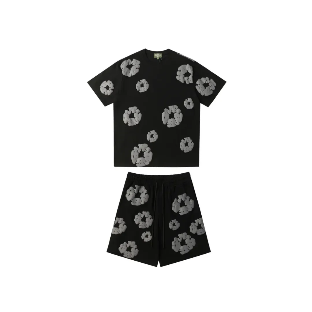 The DT Set Tee & Shorts from the Cotton Wreath Collection embodies a fusion of streetwear aesthetics and profound cultural storytelling. This set features the signature cotton wreath motif, symbolizing African American heritage and resilience.