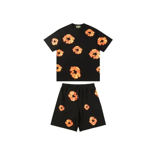 The DT Set Tee & Shorts from the Cotton Wreath Collection embodies a fusion of streetwear aesthetics and profound cultural storytelling. This set features the signature cotton wreath motif, symbolizing African American heritage and resilience.