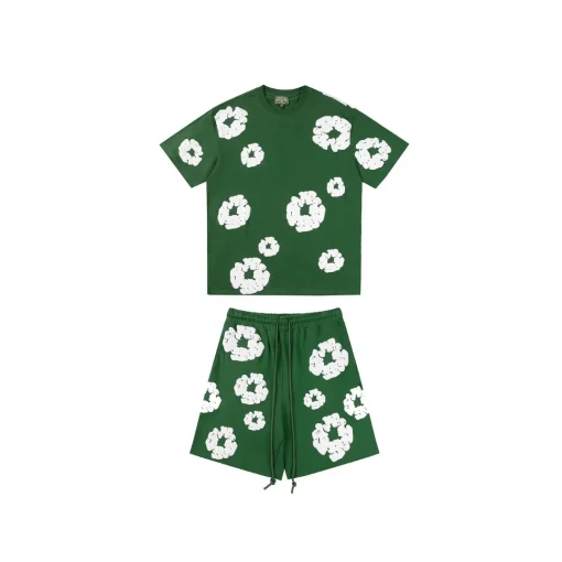 The DT Set Tee & Shorts from the Cotton Wreath Collection embodies a fusion of streetwear aesthetics and profound cultural storytelling. This set features the signature cotton wreath motif, symbolizing African American heritage and resilience.