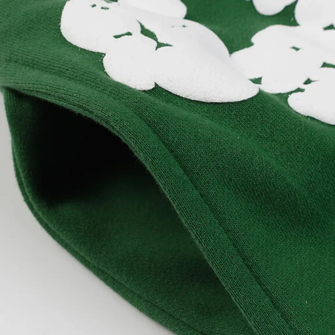 – Design: Features the iconic cotton wreath puff print, meticulously applied by hand, ensuring each piece is unique.