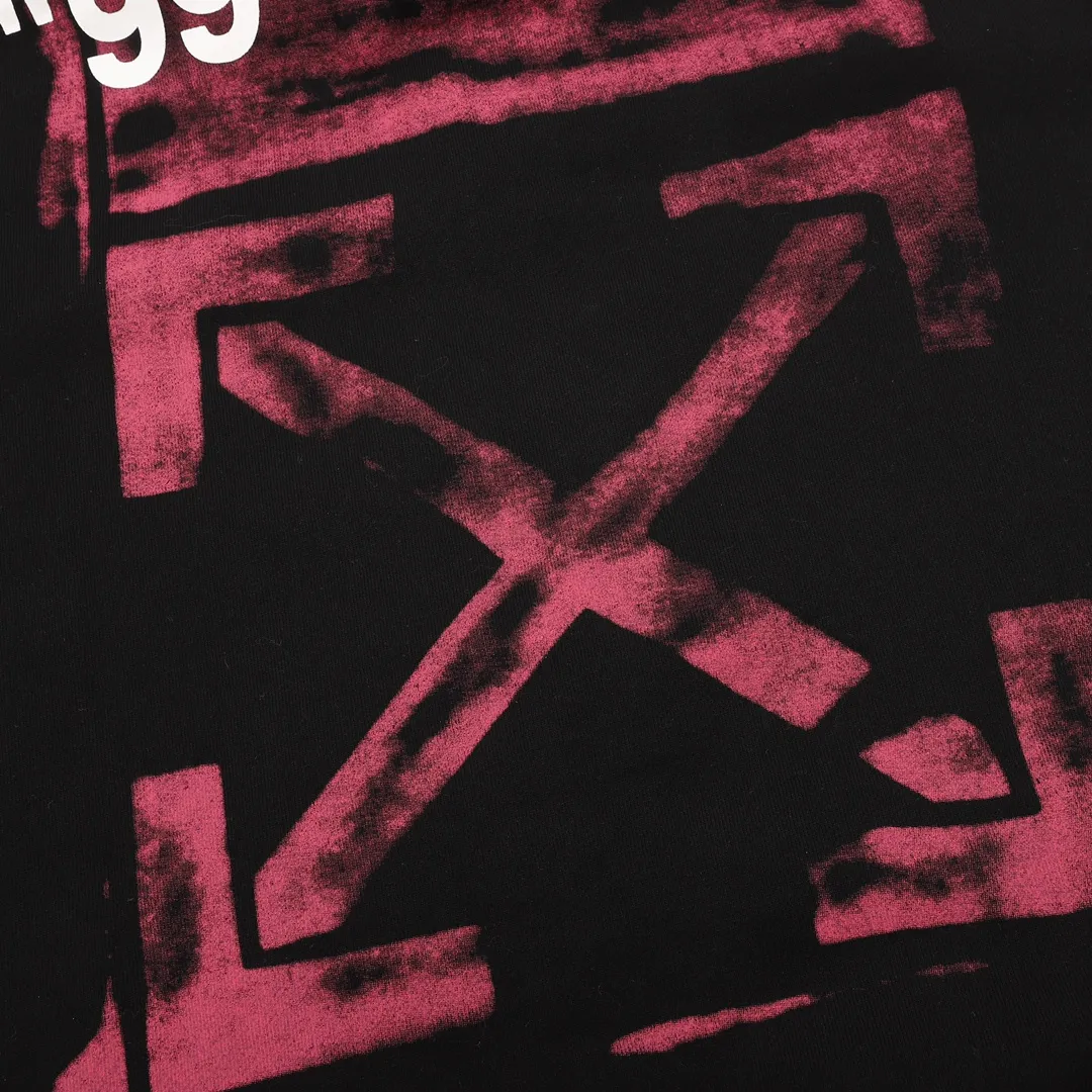 The OW Diagonal Stencil Hoodie in black delivers a bold take on modern streetwear with an artistic twist. Featuring striking pink stencil-style arrows on the back and bold “IMPRESSIONISM” text along the sleeves, this piece blends Off-White’s signature motifs with graphic intensity. Front prints include a minimal “OFF” circle logo and micro text branding, giving it a layered visual identity. Made from soft cotton fleece for all-day comfort.