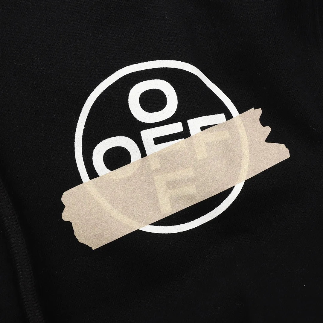 OW Diagonal Tape Arrows Hoodie in Black - 347 - owf0000347