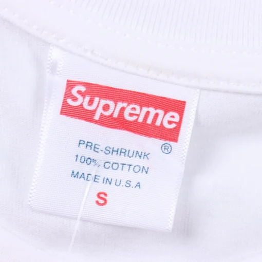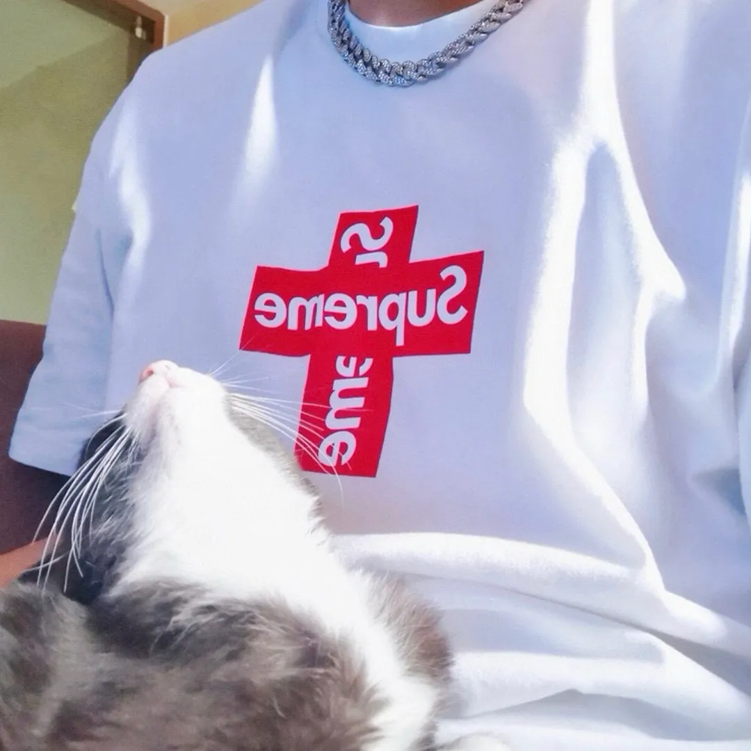 A timeless piece from SUP, this white tee showcases the bold Cross Box Logo in vivid red across the chest. Minimalist yet iconic, it combines streetwear heritage with clean design. Crafted from premium cotton for all-day comfort, this shirt is perfect for anyone who loves essential pieces with bold branding.