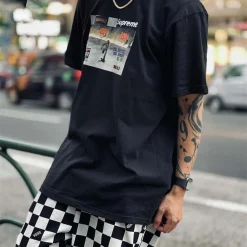 Discription: The Supreme T-shirt stands as a definitive piece of urban fashion, a true icon that sets the standard for street style. Highlighted by its instantly recognizable Box Logo, it embodies a fearless attitude and a raw, confident aesthetic. Throw on this T-shirt to make an immediate statement. It’s the ultimate symbol of authenticity, helping you own your look and dominate the streetwear scene.